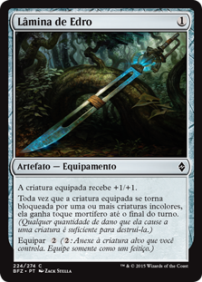 | Rules | Equipped creature gets +1/+1. Whenever equipped creature becomes blocked by one or more colorless creatures, it gains deathtouch until end of turn. (Any amount of damage it deals to a creature is enough to destroy it.) Equip (: Attach to target creature you control. Equip only as a sorcery.) |