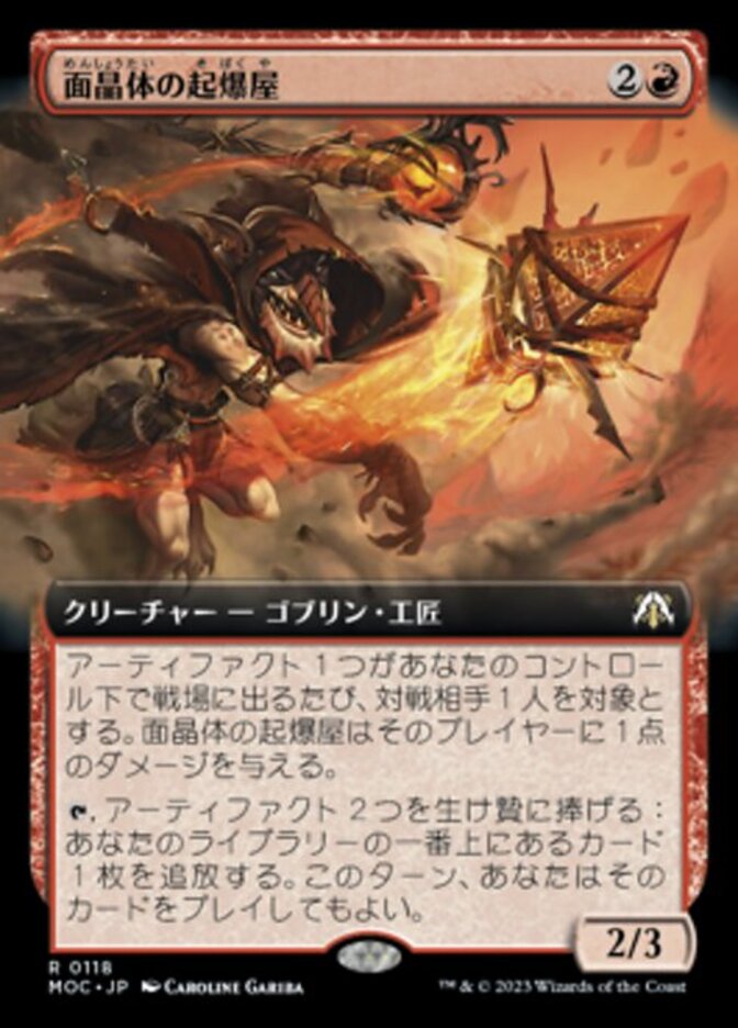| Rules | Whenever an artifact enters the battlefield under your control, Hedron Detonator deals 1 damage to target opponent. , Sacrifice two artifacts: Exile the top card of your library. You may play that card this turn. |