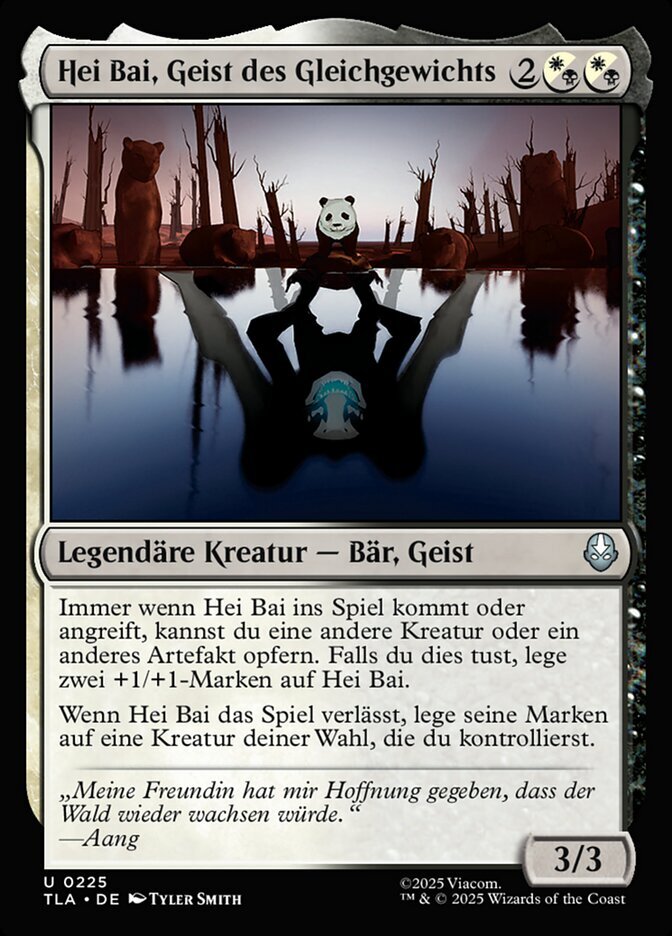 | Rules | Whenever Hei Bai enters or attacks, you may sacrifice another creature or artifact. If you do, put two +1/+1 counters on Hei Bai. When Hei Bai leaves the battlefield, put its counters on target creature you control. |
