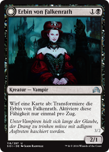 | Rules | Discard a card: Transform Heir of Falkenrath. Activate only once each turn. // Flying |