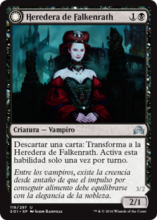 | Rules | Discard a card: Transform Heir of Falkenrath. Activate only once each turn. // Flying |