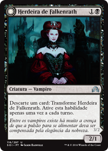 | Rules | Discard a card: Transform Heir of Falkenrath. Activate only once each turn. // Flying |