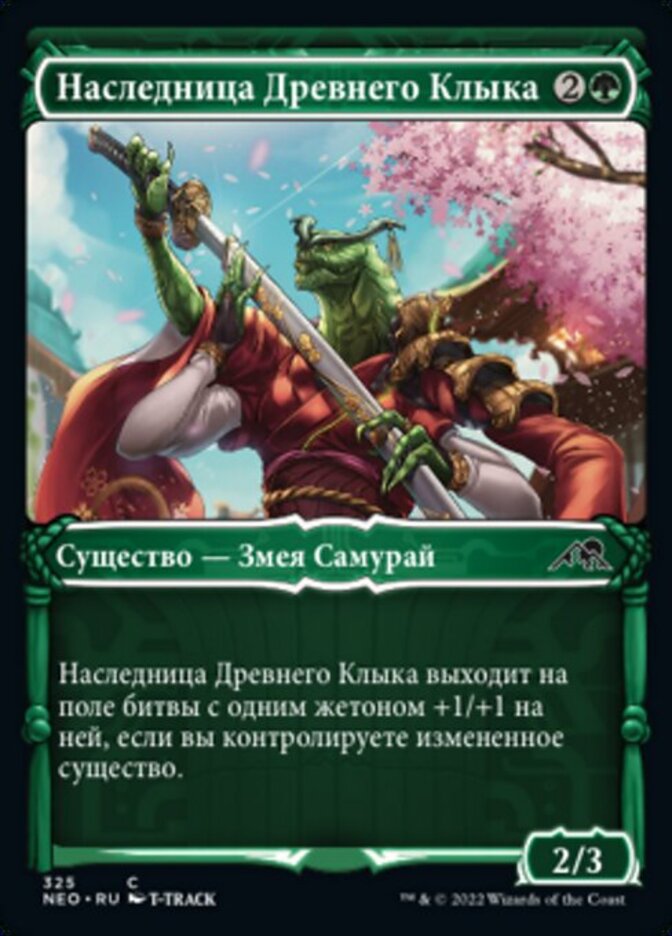 | Rules | Heir of the Ancient Fang enters the battlefield with a +1/+1 counter on it if you control a modified creature. (Equipment, Auras you control, and counters are modifications.) |