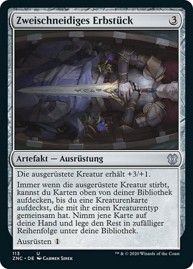 | Rules | Equipped creature gets +3/+1. Whenever equipped creature dies, you may reveal cards from the top of your library until you reveal a creature card that shares a creature type with it. Put that card into your hand and the rest on the bottom of your library in a random order. Equip |
