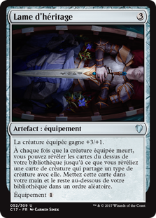 | Rules | Equipped creature gets +3/+1. Whenever equipped creature dies, you may reveal cards from the top of your library until you reveal a creature card that shares a creature type with it. Put that card into your hand and the rest on the bottom of your library in a random order. Equip |