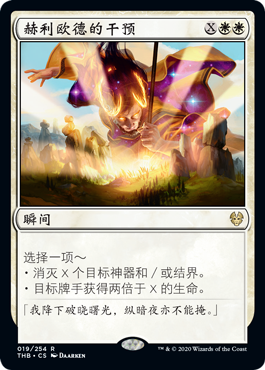 | Rules | Choose one — • Destroy X target artifacts and/or enchantments. • Target player gains twice X life. |