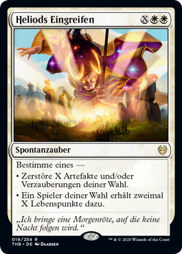 | Rules | Choose one — • Destroy X target artifacts and/or enchantments. • Target player gains twice X life. |