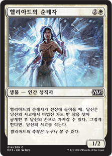 | Rules | When Heliod's Pilgrim enters the battlefield, you may search your library for an Aura card, reveal it, put it into your hand, then shuffle. |