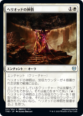 | Rules | Enchant creature Heliod's Punishment enters the battlefield with four task counters on it. Enchanted creature can't attack or block. It loses all abilities and has ": Remove a task counter from Heliod's Punishment. Then if it has no task counters on it, destroy Heliod's Punishment." |