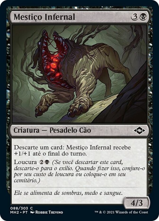 | Rules | Discard a card: Hell Mongrel gets +1/+1 until end of turn. Madness (If you discard this card, discard it into exile. When you do, cast it for its madness cost or put it into your graveyard.) |