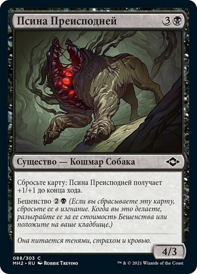 | Rules | Discard a card: Hell Mongrel gets +1/+1 until end of turn. Madness (If you discard this card, discard it into exile. When you do, cast it for its madness cost or put it into your graveyard.) |