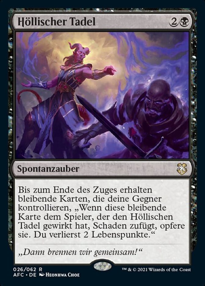 | Rules | Until end of turn, permanents your opponents control gain "When this permanent deals damage to the player who cast Hellish Rebuke, sacrifice this permanent. You lose 2 life." |