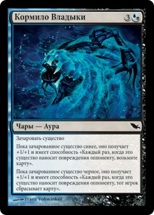 | Rules | Enchant creature As long as enchanted creature is blue, it gets +1/+1 and has "Whenever this creature deals damage to an opponent, draw a card." As long as enchanted creature is black, it gets +1/+1 and has "Whenever this creature deals damage to an opponent, that player discards a card." |