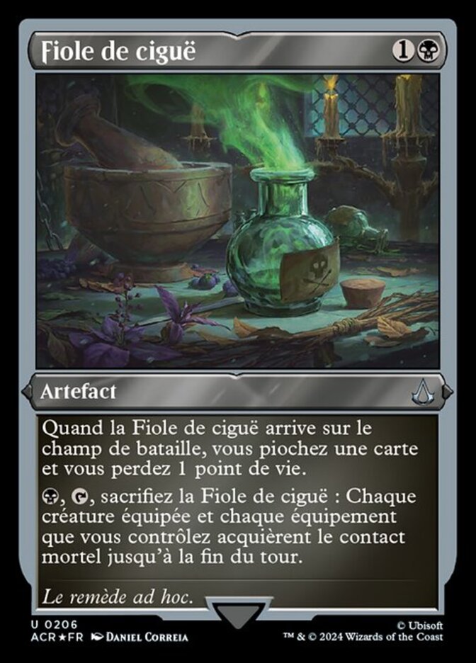 | Rules | When Hemlock Vial enters the battlefield, you draw a card and you lose 1 life. , , Sacrifice Hemlock Vial: Each equipped creature and Equipment you control gains deathtouch until end of turn. |