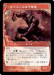 | Rules | Haste Echo (At the beginning of your upkeep, if this came under your control since the beginning of your last upkeep, sacrifice it unless you pay its echo cost.) : Henchfiend of Ukor gets +1/+0 until end of turn. |