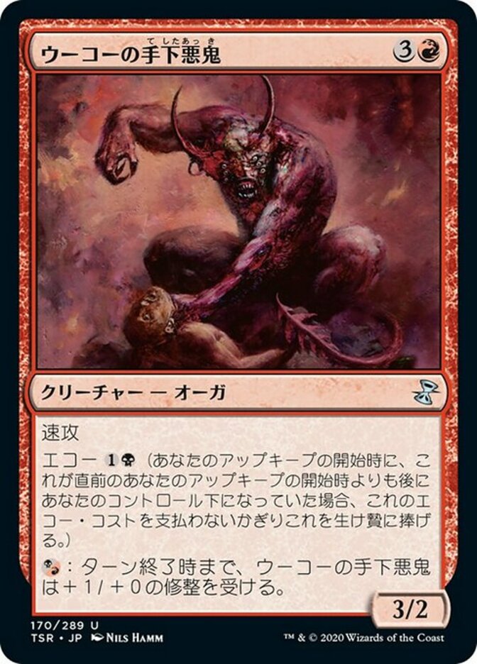 | Rules | Haste Echo (At the beginning of your upkeep, if this came under your control since the beginning of your last upkeep, sacrifice it unless you pay its echo cost.) : Henchfiend of Ukor gets +1/+0 until end of turn. |