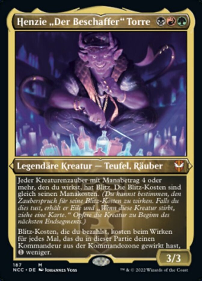 | Rules | Each creature you cast with mana value 4 or greater has blitz. The blitz cost is equal to its mana cost. (You may choose to cast that spell for its blitz cost. If you do, it gains haste and "When this creature dies, draw a card." Sacrifice it at the beginning of the next end step.) Blitz costs you pay cost less for each time you've cast your commander from the command zone this game. |