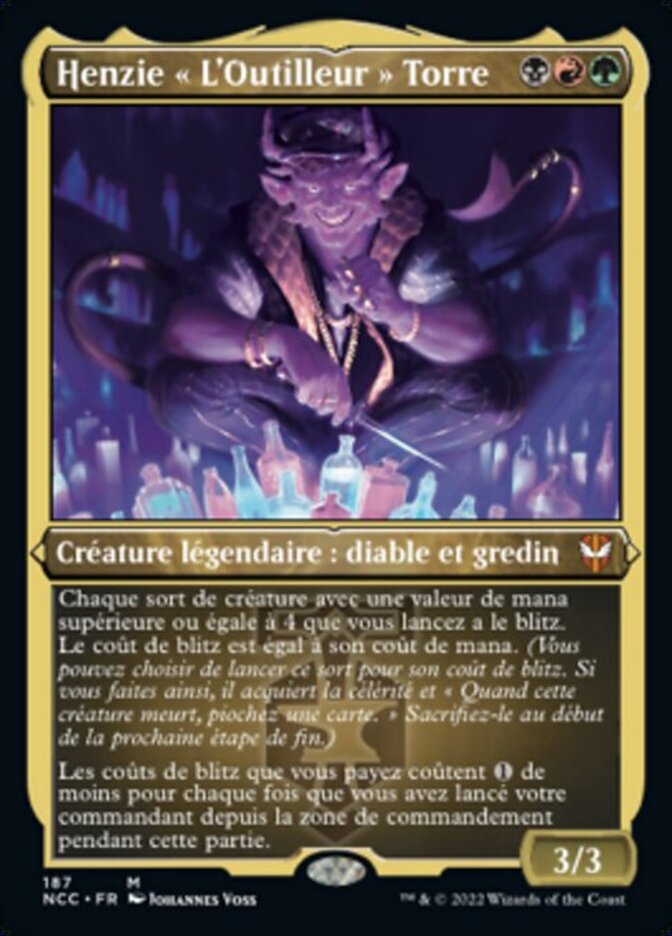 | Rules | Each creature you cast with mana value 4 or greater has blitz. The blitz cost is equal to its mana cost. (You may choose to cast that spell for its blitz cost. If you do, it gains haste and "When this creature dies, draw a card." Sacrifice it at the beginning of the next end step.) Blitz costs you pay cost less for each time you've cast your commander from the command zone this game. |