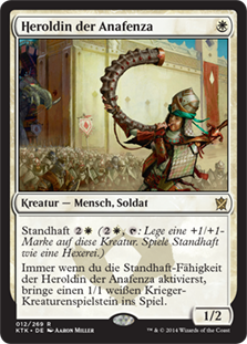 | Rules | Outlast (, : Put a +1/+1 counter on this creature. Outlast only as a sorcery.) Whenever you activate Herald of Anafenza's outlast ability, create a 1/1 white Warrior creature token. |