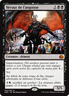 | Rules | Improvise (Your artifacts can help cast this spell. Each artifact you tap after you're done activating mana abilities pays for .) Flying At the beginning of your end step, each opponent discards a card. , Sacrifice an artifact: Target creature gets -2/-2 until end of turn. |