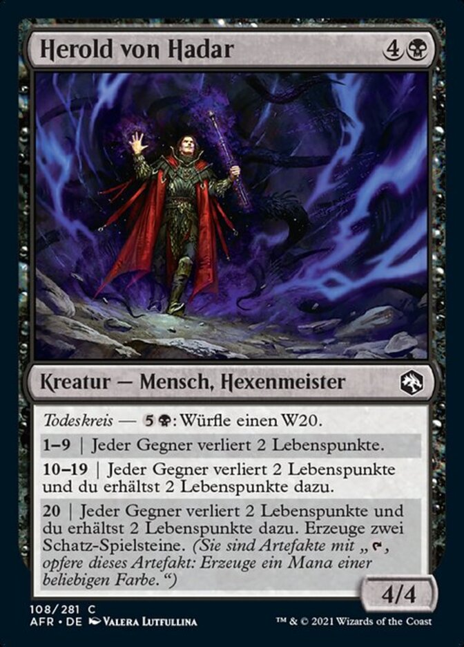 | Rules | Circle of Death — : Roll a d20. 1—9 | Each opponent loses 2 life. 10—19 | Each opponent loses 2 life and you gain 2 life. 20 | Each opponent loses 2 life and you gain 2 life. Create two Treasure tokens. (They're artifacts with ", Sacrifice this artifact: Add one mana of any color.") |