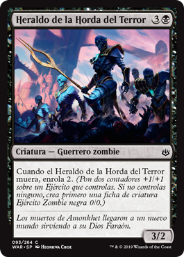 | Rules | When Herald of the Dreadhorde dies, amass 2. (Put two +1/+1 counters on an Army you control. If you don't control one, create a 0/0 black Zombie Army creature token first.) |