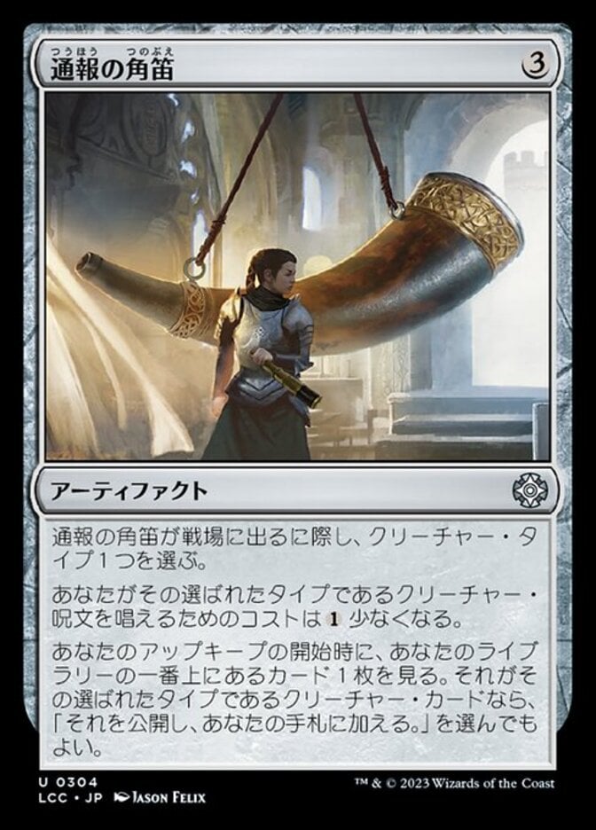| Rules | As Herald's Horn enters the battlefield, choose a creature type. Creature spells you cast of the chosen type cost less to cast. At the beginning of your upkeep, look at the top card of your library. If it's a creature card of the chosen type, you may reveal it and put it into your hand. |