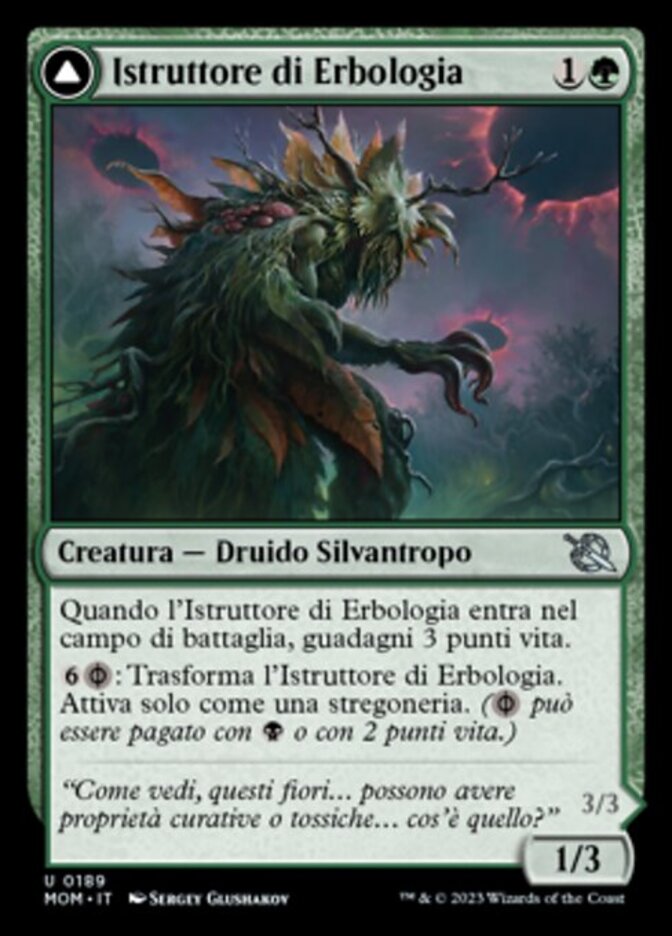 | Rules | When Herbology Instructor enters the battlefield, you gain 3 life. : Transform Herbology Instructor. Activate only as a sorcery. ( can be paid with either or 2 life.) // When this creature transforms into Malady Invoker, target creature an opponent controls gets -0/-X until end of turn, where X is Malady Invoker's power. |