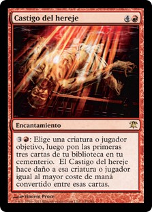 | Rules | : Choose any target, then mill three cards. Heretic's Punishment deals damage to that permanent or player equal to the highest mana value among the milled cards. |