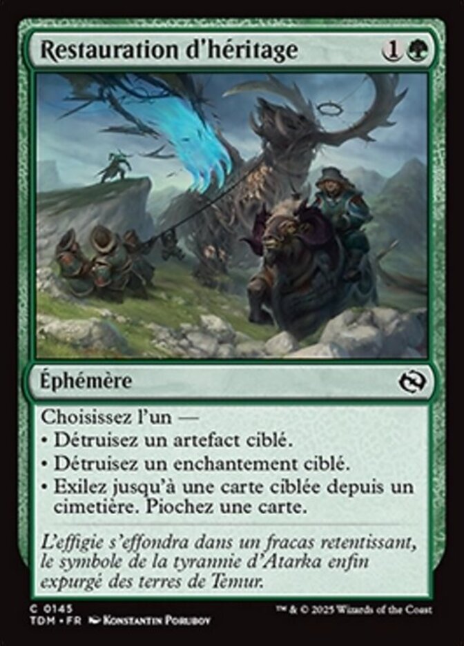 | Flavor | With an echoing crash the effigy fell, the symbol of Atarka's tyranny expunged from Temur lands. |