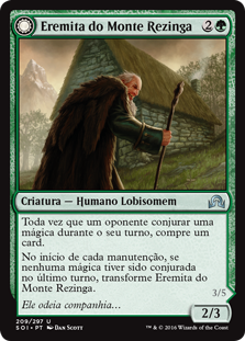 | Rules | Whenever an opponent casts a spell during your turn, draw a card. At the beginning of each upkeep, if no spells were cast last turn, transform Hermit of the Natterknolls. // Whenever an opponent casts a spell during your turn, draw two cards. At the beginning of each upkeep, if a player cast two or more spells last turn, transform Lone Wolf of the Natterknolls. |