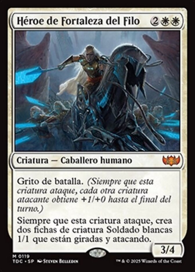 | Rules | Battle cry (Whenever this creature attacks, each other attacking creature gets +1/+0 until end of turn.) Whenever Hero of Bladehold attacks, create two 1/1 white Soldier creature tokens that are tapped and attacking. |