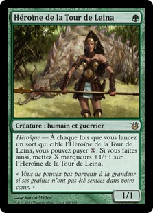 | Rules | Heroic — Whenever you cast a spell that targets Hero of Leina Tower, you may pay . If you do, put X +1/+1 counters on Hero of Leina Tower. |