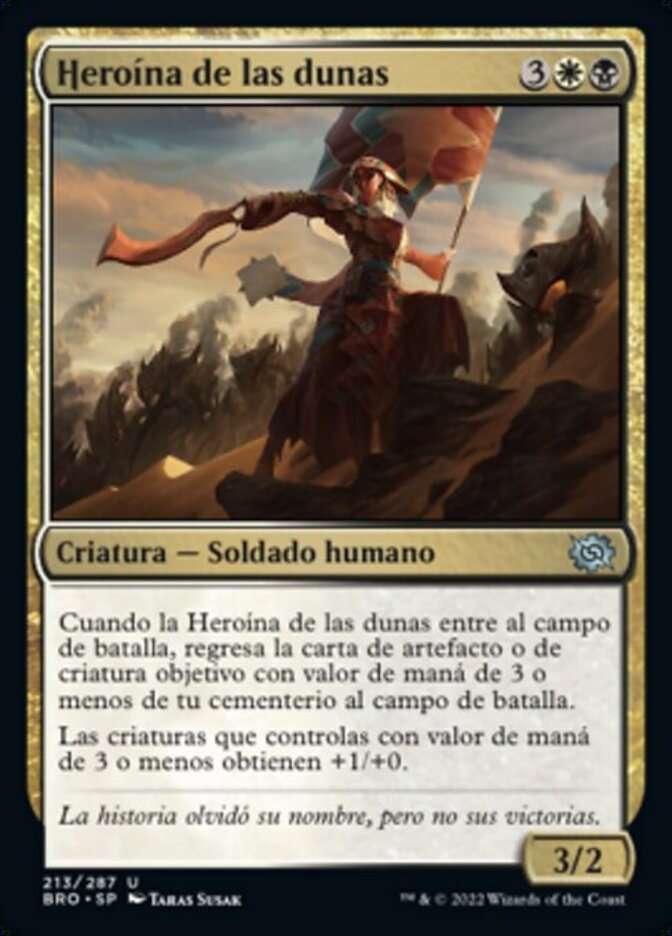 | Rules | When Hero of the Dunes enters the battlefield, return target artifact or creature card with mana value 3 or less from your graveyard to the battlefield. Creatures you control with mana value 3 or less get +1/+0. |