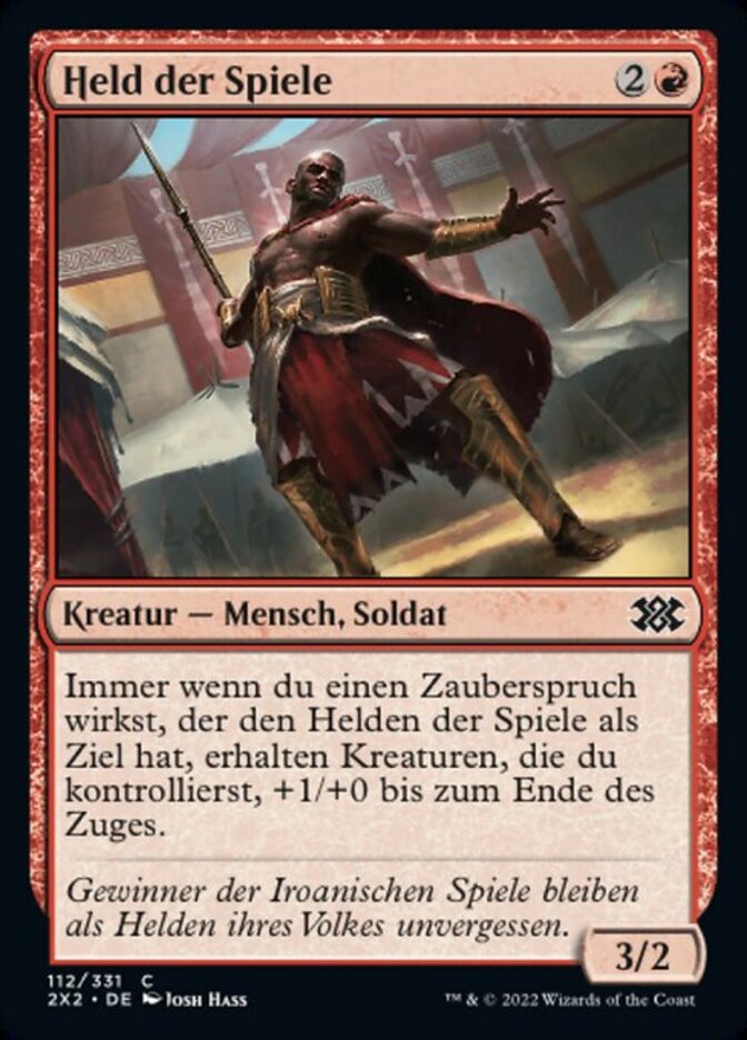 | Rules | Whenever you cast a spell that targets Hero of the Games, creatures you control get +1/+0 until end of turn. |