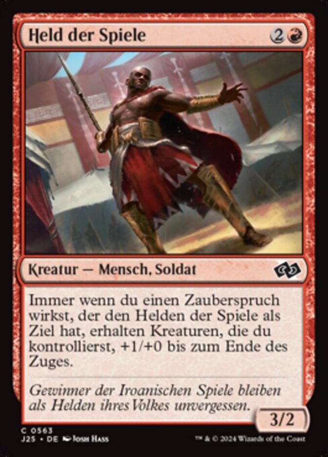 | Rules | Whenever you cast a spell that targets Hero of the Games, creatures you control get +1/+0 until end of turn. |