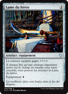 | Rules | Equipped creature gets +3/+2. Whenever a legendary creature enters the battlefield under your control, you may attach Hero's Blade to it. Equip (: Attach to target creature you control. Equip only as a sorcery.) |
