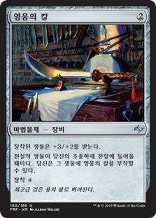 | Rules | Equipped creature gets +3/+2. Whenever a legendary creature enters the battlefield under your control, you may attach Hero's Blade to it. Equip (: Attach to target creature you control. Equip only as a sorcery.) |