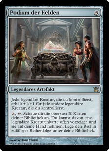 | Rules | Each legendary creature you control gets +1/+1 for each other legendary creature you control. , : Look at the top X cards of your library. You may reveal a legendary creature card from among them and put it into your hand. Put the rest on the bottom of your library in a random order. |