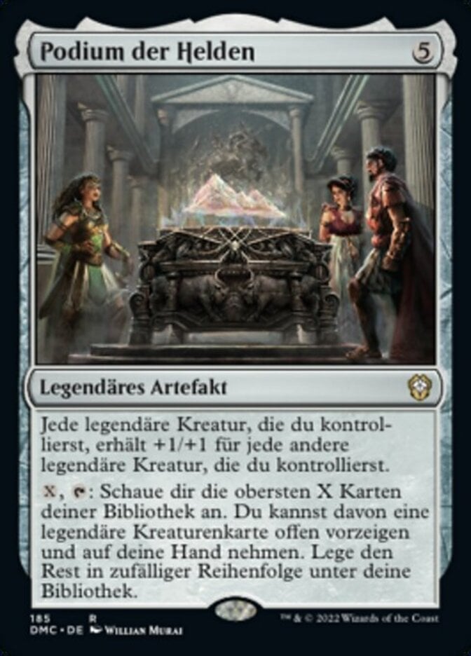 | Rules | Each legendary creature you control gets +1/+1 for each other legendary creature you control. , : Look at the top X cards of your library. You may reveal a legendary creature card from among them and put it into your hand. Put the rest on the bottom of your library in a random order. |