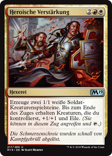 | Rules | Create two 1/1 white Soldier creature tokens. Until end of turn, creatures you control get +1/+1 and gain haste. (They can attack and this turn.) |