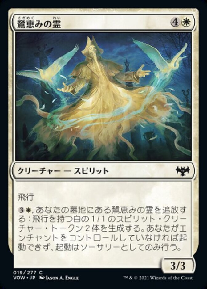 | Rules | Flying , Exile Heron-Blessed Geist from your graveyard: Create two 1/1 white Spirit creature tokens with flying. Activate only if you control an enchantment and only as a sorcery. |