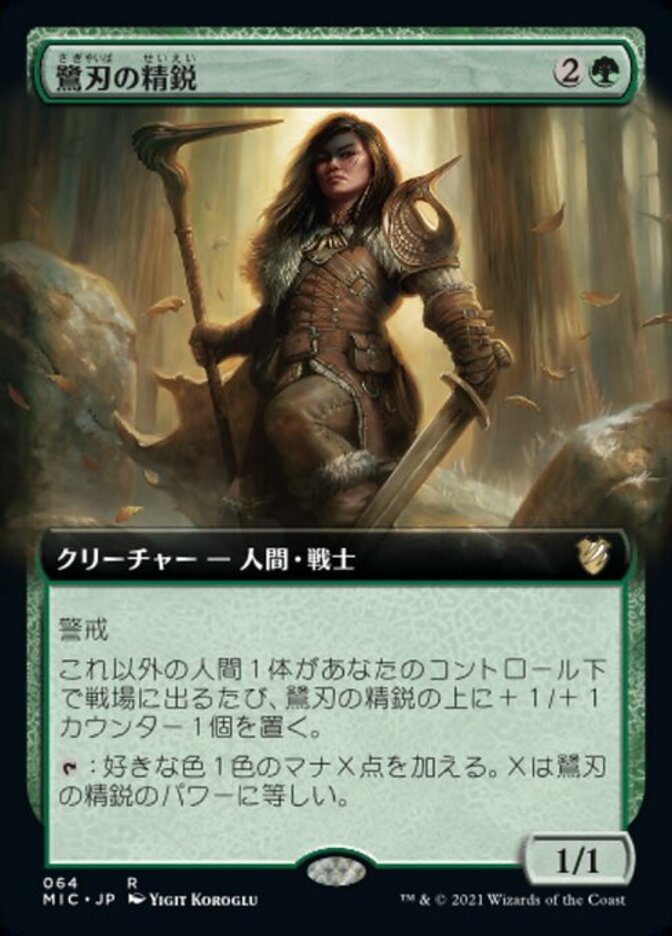 | Rules | Vigilance Whenever another Human enters the battlefield under your control, put a +1/+1 counter on Heronblade Elite. : Add X mana of any one color, where X is Heronblade Elite's power. |
