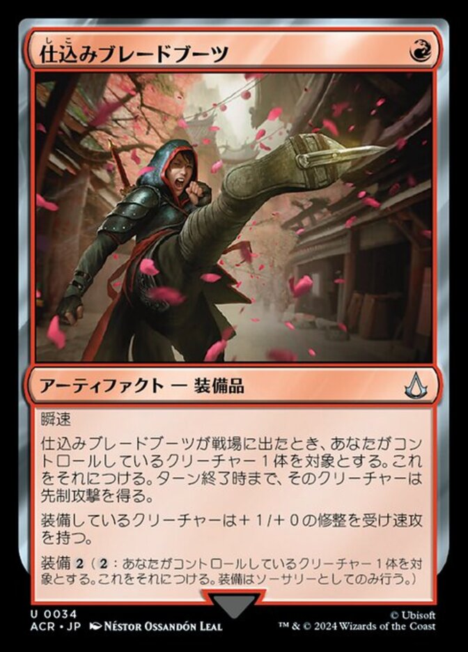 | Rules | Flash When Hidden Footblade enters the battlefield, attach it to target creature you control. That creature gains first strike until end of turn. Equipped creature gets +1/+0 and has haste. Equip (: Attach to target creature you control. Equip only as a sorcery.) |