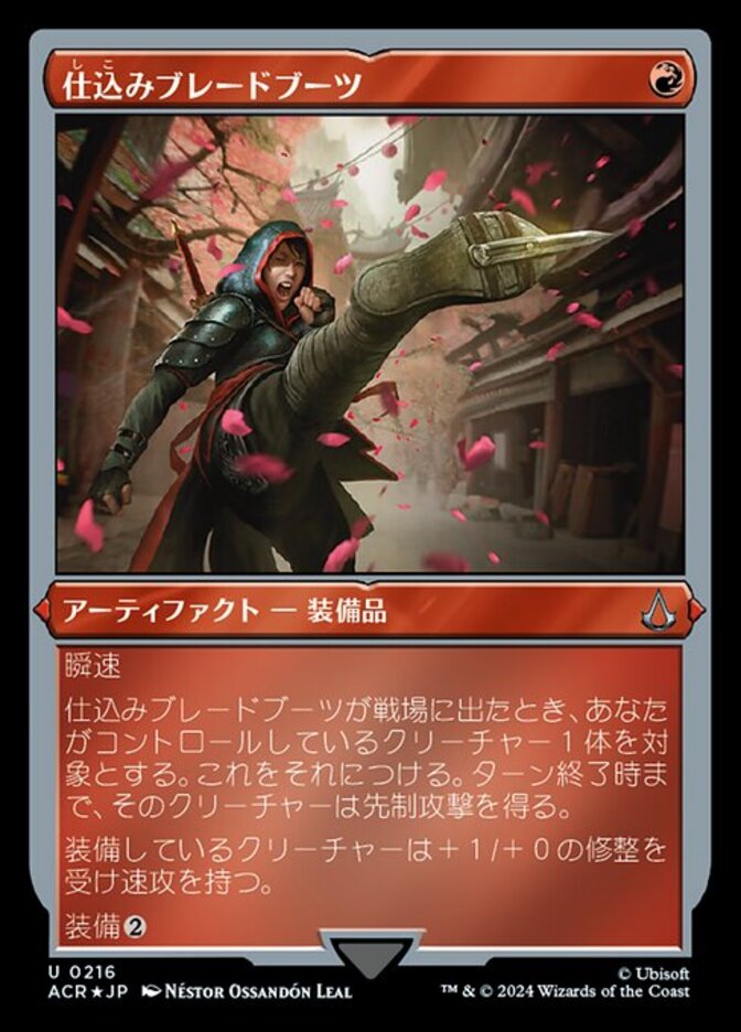 | Rules | Flash When Hidden Footblade enters the battlefield, attach it to target creature you control. That creature gains first strike until end of turn. Equipped creature gets +1/+0 and has haste. Equip (: Attach to target creature you control. Equip only as a sorcery.) |