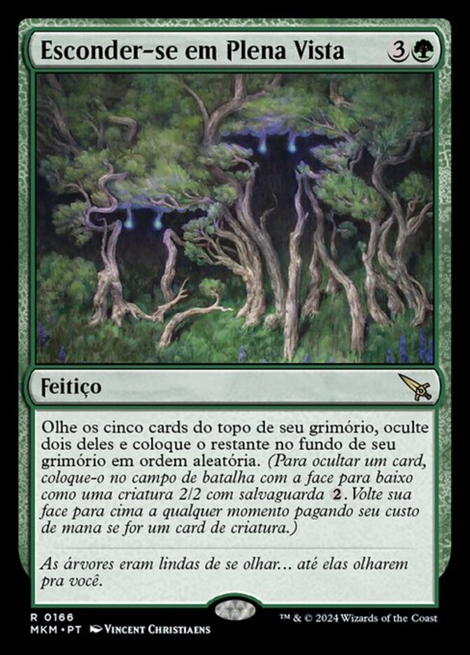 | Rules | Look at the top five cards of your library, cloak two of them, and put the rest on the bottom of your library in a random order. (To cloak a card, put it onto the battlefield face down as a 2/2 creature with ward . Turn it face up any time for its mana cost if it's a creature card.) |