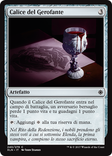| Rules | When Hierophant's Chalice enters the battlefield, target opponent loses 1 life and you gain 1 life. : Add . |