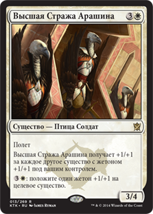 | Rules | Flying High Sentinels of Arashin gets +1/+1 for each other creature you control with a +1/+1 counter on it. : Put a +1/+1 counter on target creature. |