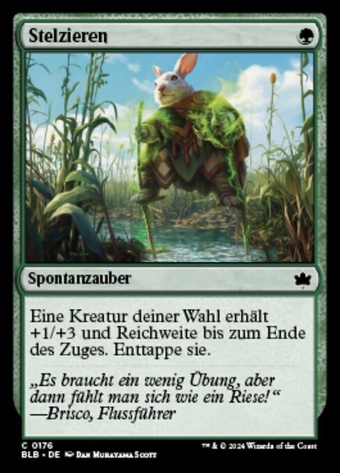 | Rules | Target creature gets +1/+3 and gains reach until end of turn. Untap it. |
