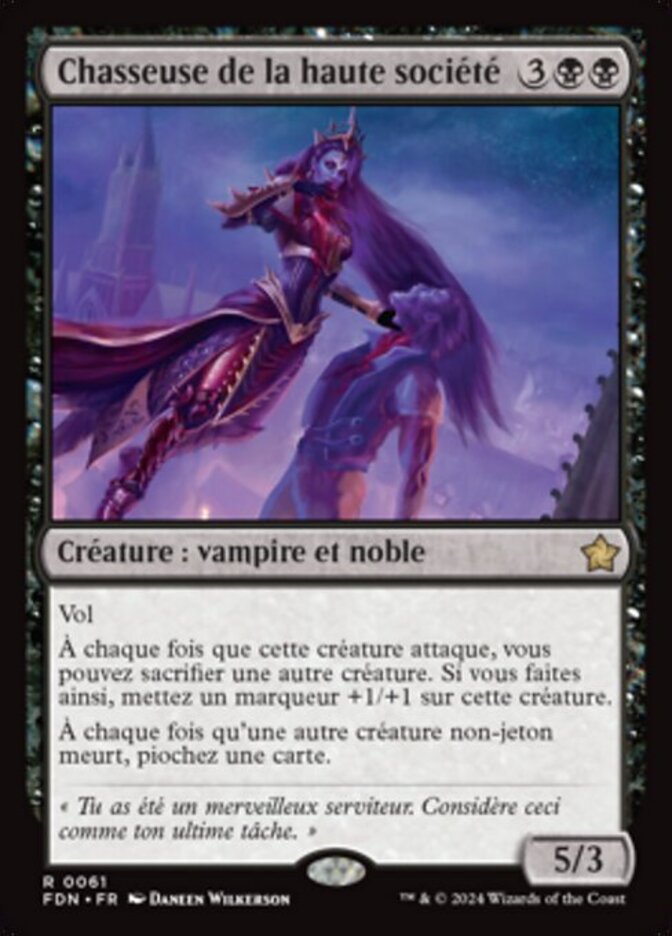 | Rules | Flying Whenever this creature attacks, you may sacrifice another creature. If you do, put a +1/+1 counter on this creature. Whenever another nontoken creature dies, draw a card. |